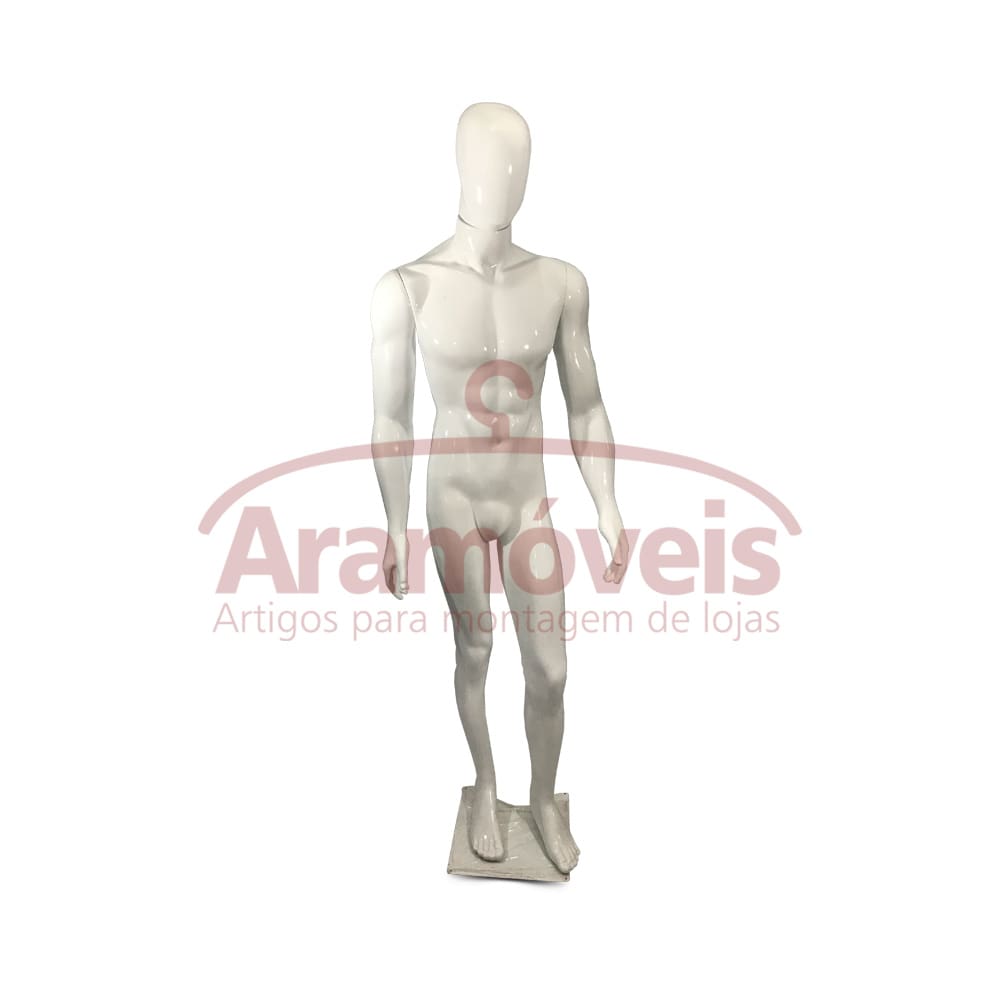 Com acabamento igual ao modelo de fibra, possui mesmo modelo de pintura dos manequins de fibra, porém são manequins mais leves e com maior resistência que os modelos de fibra, por se tratar de um manequim de polietileno é muito difícil de ser quebrado.